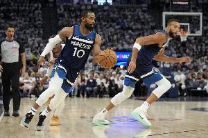 本场比赛,森林狼内线戈贝尔表现不错,尤其是防守端威慑力十足,不过最终犯满离场,打了28分钟,投篮13中7,拿到14分14篮板(7前场篮板)1助攻1抢断5盖帽的数据。康利首发28分钟6投2中,三分5中1拿到5分5篮板6助攻1抢断1盖帽,正负值+2。
