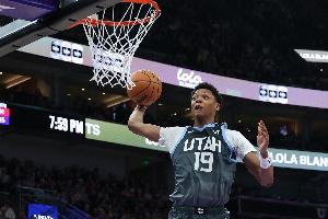 上半场,爵士球员贝利和科迪·威廉姆斯手感冰凉,贝利20分钟8投0中、三分2中0没得分,拿到5篮板1助攻3盖帽,有4失误,正负值-17;