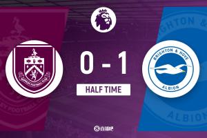 上半场伤停补时4分钟,半场结束,伯恩利暂0-1布莱顿。